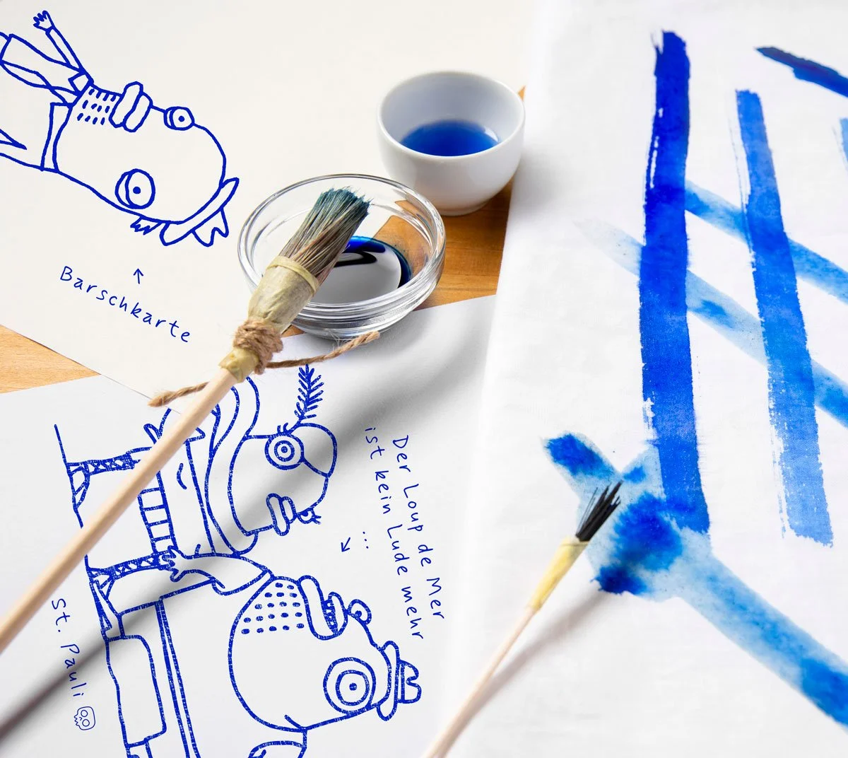 Die Geburtsstätte von Loup de Mer & Barsch. Leicht glubschig und sehr norddeutsch. Alle Fischköppe sind handgezeichnet, detailverliebt und strahlen in schönstem Blau. Wir lieben sie! Du auch?